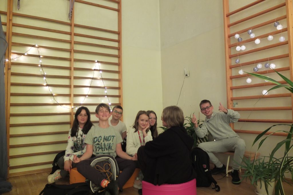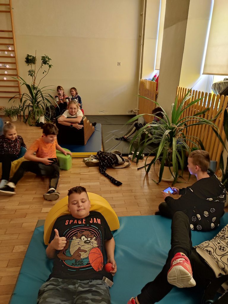 - W tym dniu uczniowie mieli okazję wyciszyć się w Komnacie Relaksu znajdującej się w sali numer 11. Było można odpocząć od szkolnego zgiełku i zrelaksować się przy spokojnej muzyce oraz przyjemnym zapachu kwiatów.