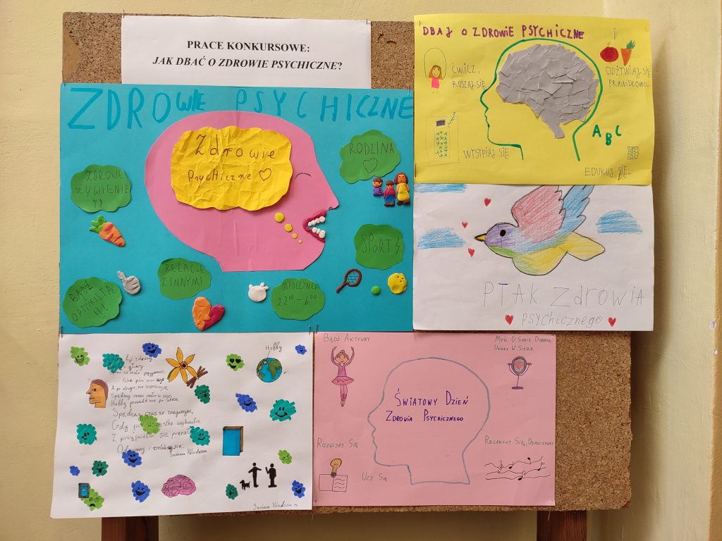 - Co więcej, uczniowie naszej szkoły mogli wziąć udział w konkursie na ulotkę informacyjną: Jak dbać o zdrowie psychiczne? I miejsce zajęła Oliwia kl. 5a, drugie Lilianna z klasy 3a, trzecie Nadia kl. 8b. Zarówno laureaci jak i uczestnicy zostali nagrodzeni 🙂 Wystawa prac konkursowych znajduje się na parterze.