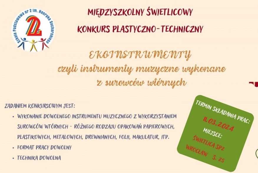• Wyniki konkursu umieścimy na stronie internetowej SP2 w zakładce „O SZKOLE –> ŚWIETLICA” po 25.03.2024 r.